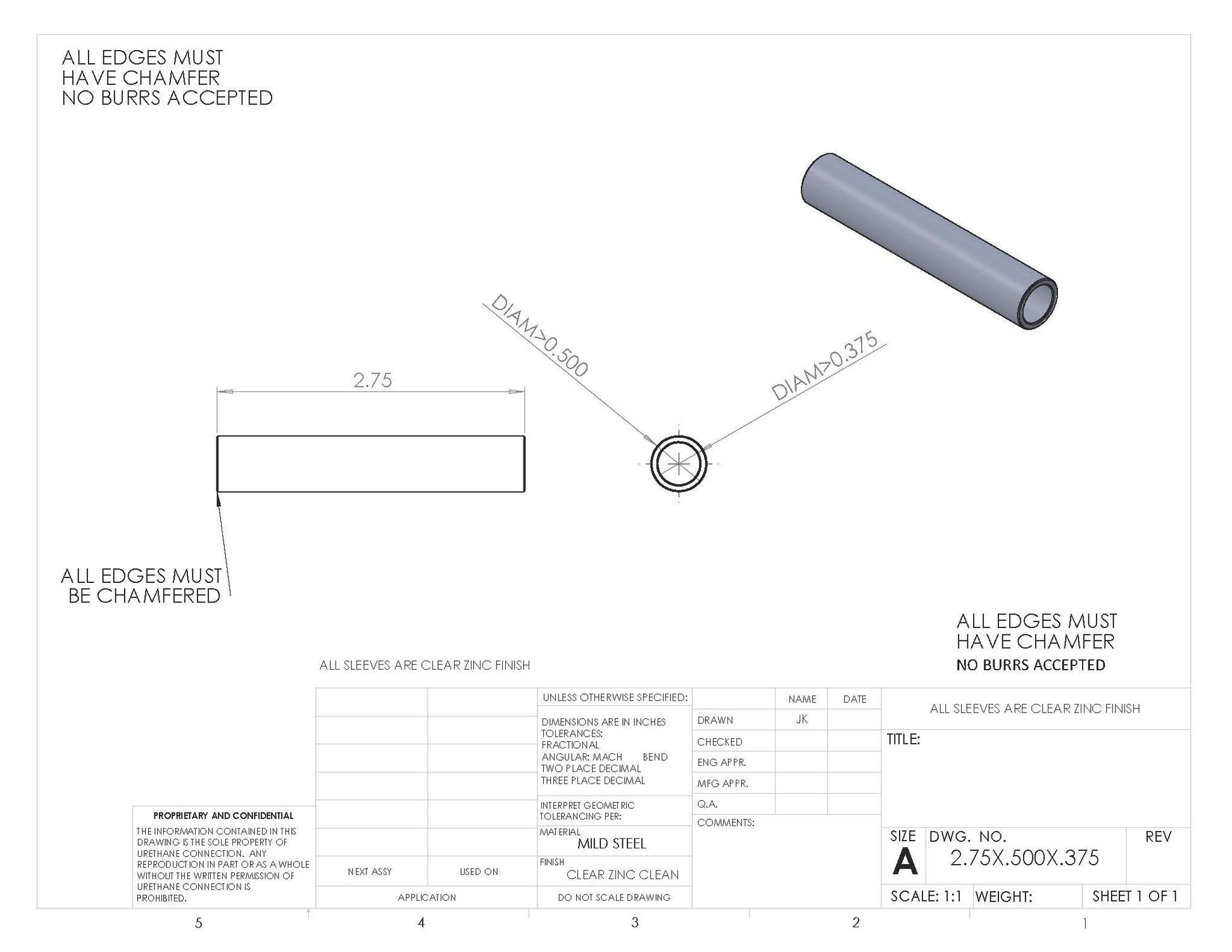 This precision-machined metal sleeve is designed to pair seamlessly with urethane bushings, providing strength, durability, and long-lasting performance. Manufactured from high-quality steel, the sleeve ensures a solid core that resists deformation under load. The clear zinc plating offers superior corrosion resistance, protecting against rust and wear while maintaining a clean, professional finish.