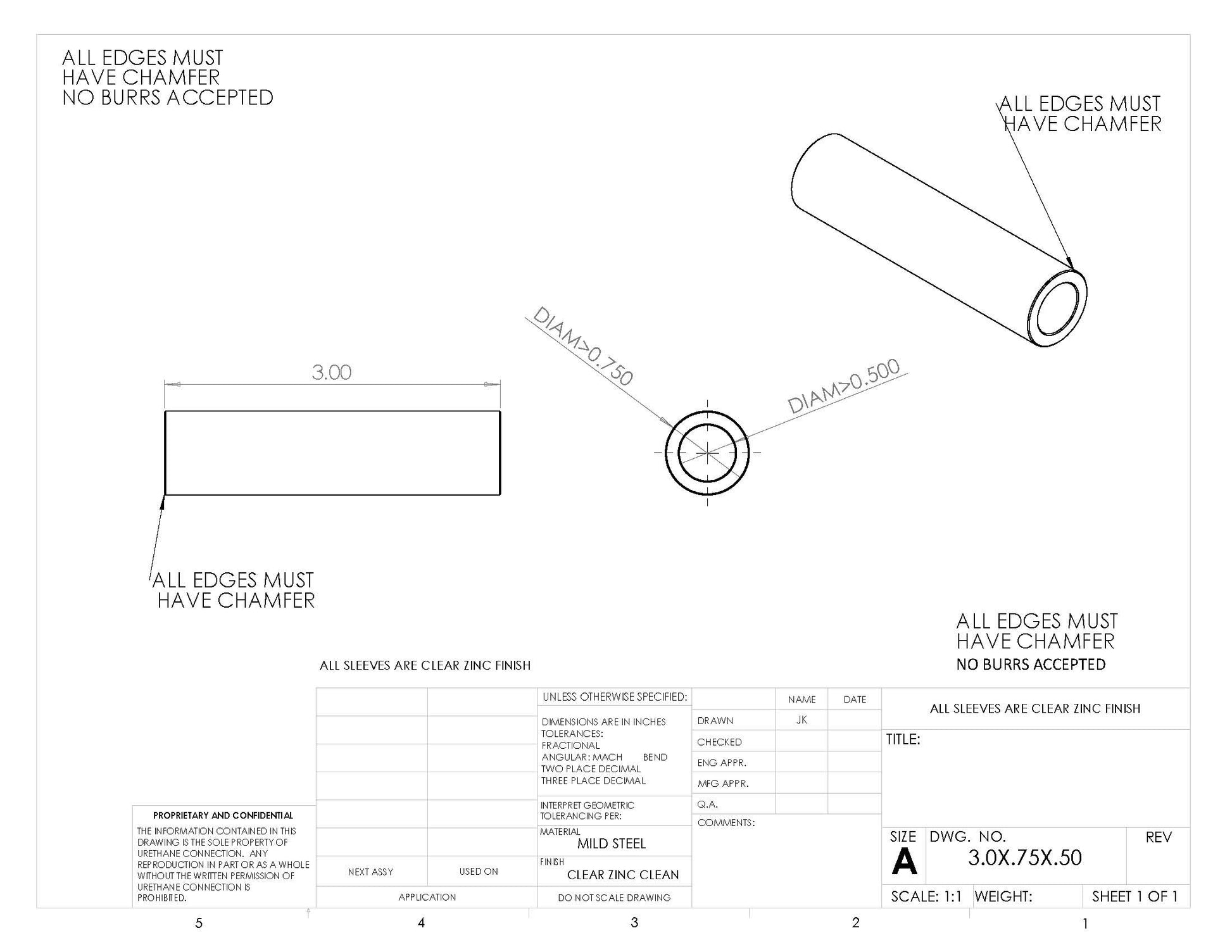 SLEEVE BULK 3.00 X .750 X .500