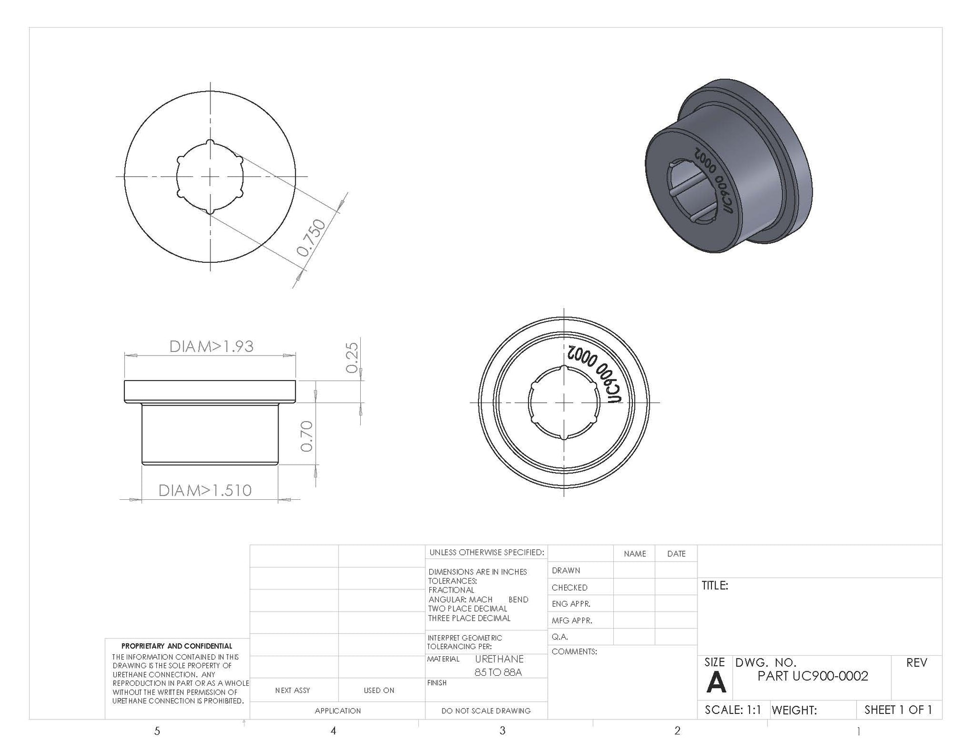 Polyurethane Suspension Bushing – 2.0" OD x 2.00" Length, Fits 1.50" ID Housing, .75 sleeve "THESE ARE BULK BUSHING SOLD BY PC"