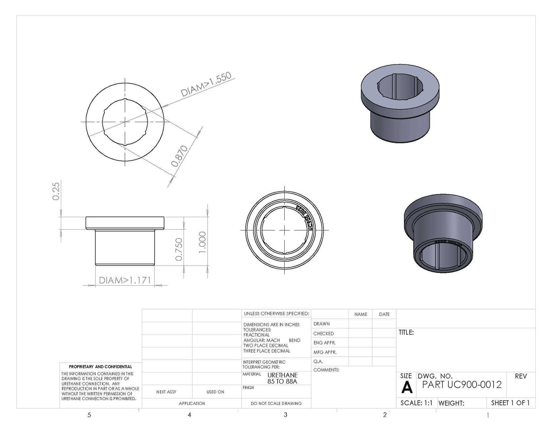 Polyurethane Suspension Bushing – 1.50" OD x .750" Length, Fits 1.175" ID Housing, 7/8 OR 22 MM. sleeve "SEE DRAWING"