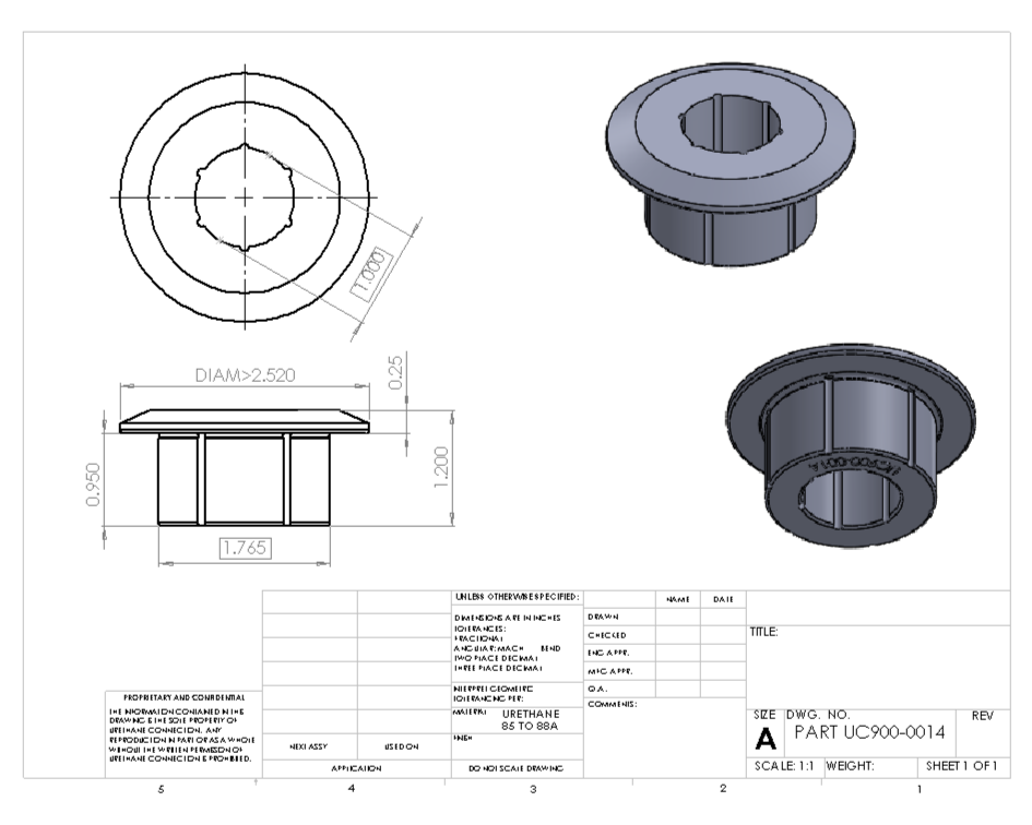 Polyurethane Suspension Bushing – 2.500" OD x .950" Length, Fits 1.750" ID Housing, 1.00 OR 25.5 MM. sleeve "SEE DRAWING"
